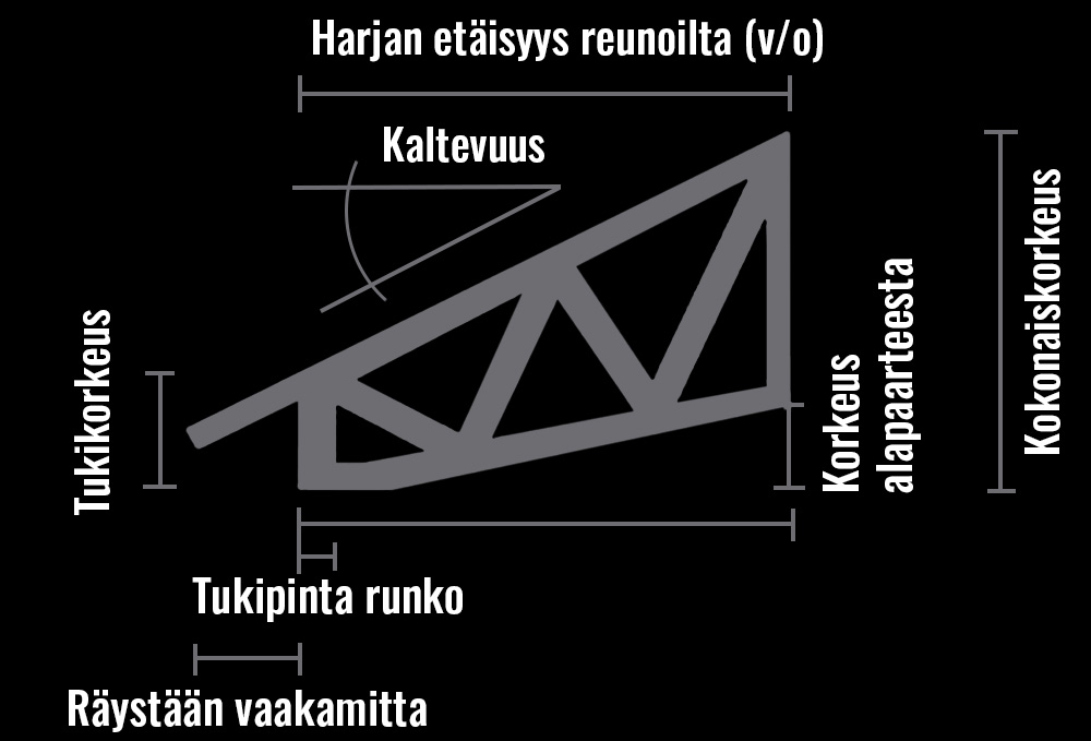 Please enable JavaScript in your browser to complete this form.Please enable JavaScript in your browser to complete this form. pään K-jako Tuen Alapaarteen pituus (mm) *Korkeus alaparteesta (mm) *Tuen leveys (mm)Tukikorkeus (mm)Räystäs (mm)Harjan etäisyys reunoilta (mm)Kokonaiskorkeus (mm)Kaltevuus1:4 (14,04 astetta)1:3 (18,43 astetta)1:3 (18,43 astetta)1:2 (26,57 astetta)1:1.5 (33,69 astetta)Muu kaltevuus (täytä kohtaan ”Lisätietoja”)K-jakoK450K600K900K1200RäystästyyppiAvoräystäsUmpiräystäs (vaakapuulla)Räystään pään muotoSuorakulmaPystysuoraMäärä *LisätietojaNimi *S-posti *Puhelinnumero *Lähiosoite *Postinumero ja postitoimipaikka *Piirustukset Click or drag files to this area to upload. You can upload up to 3 files. LÄHETÄ